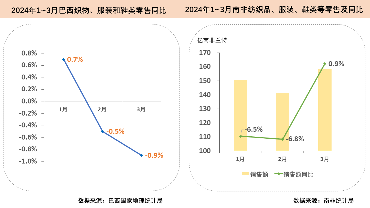 今年4月,南非通脹率達5.2%,已連續三月放緩,但仍高於南非央行設定的目標。一季度南非乐动买球平台 、服裝、鞋類和皮製用品零售表現不佳,1至2月南非乐动买球平台 服裝相關零售額同比分別下降6.5%和6.8%,3月略有回升,零售額達158.6億蘭特(約8.6億美元)。