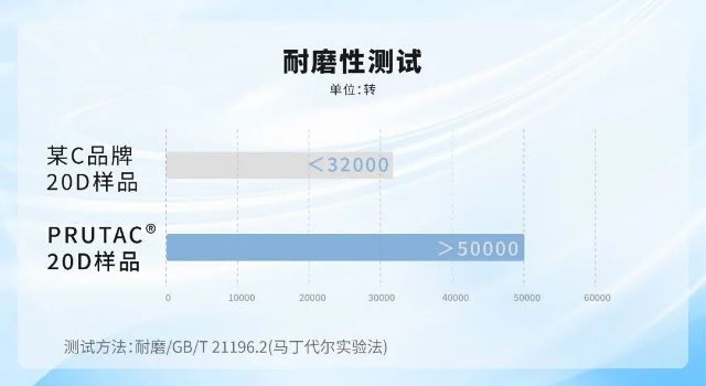 根據GB /T 21196.2 《乐动买球平台 馬丁代爾法織物耐磨性的測定》,相同組織下,PRUTAC?麵料耐磨性能優於采樣的某C品牌麵料。