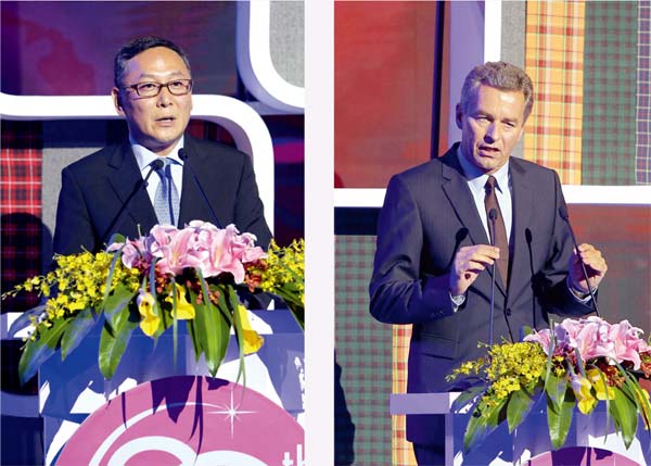 徐迎新代表主辦方致20周年慶典開幕辭。他深情回顧道,這是具有曆史意義的一刻,20 年前的一天,一位法蘭克福展覽公司的負責人叩開了辦公室的門,從那時起,intertextile 麵輔料展起航。當時正值中國內需市場蓄勢待發之際,我們以麵料為突破口,以展會的形式,為行業全麵提升搭建了全新平台,提供了新的發展契機。