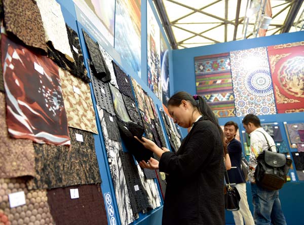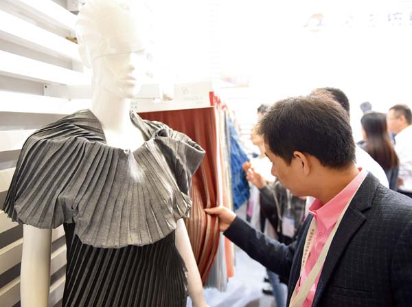 4、在時尚歐洲館的潮流趨勢展區,時尚新潮的麵料吸引了買家的眼球。本展區展示了來自意大利的最新麵料。