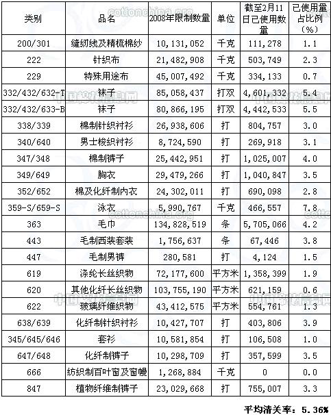 2008年1月1日至2008年12月31日,美國對從中國進口的乐动买球平台 服裝實行新的數量限製,較2007年的限製數量,增幅從10.68%到14.71%不等,平均增幅為13.34%。