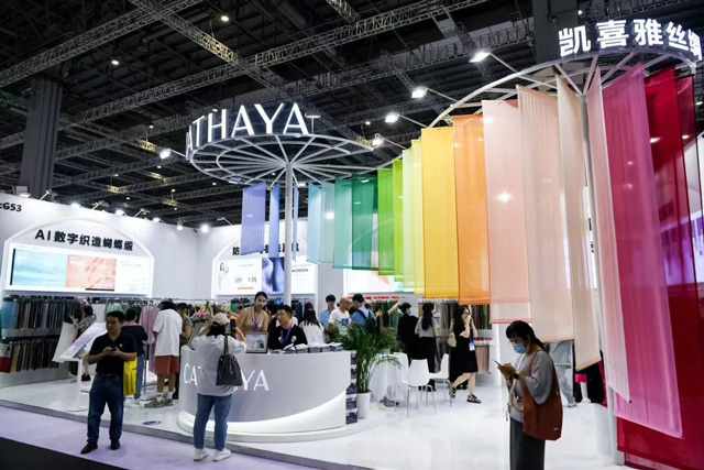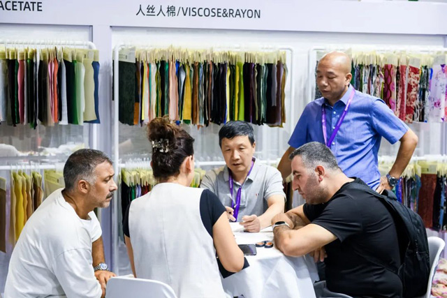 展商們滿懷期待而來,這裏是產業鏈上下遊麵對麵交流,孕育無限商機的“大舞台”。“本屆展會人流量非常大,希望通過展會平台進一步延伸我們人造絲、竹纖維、碳纖維、腈綸四大板塊產品營銷渠道和下遊應用。”吉林化纖相關負責人說道。