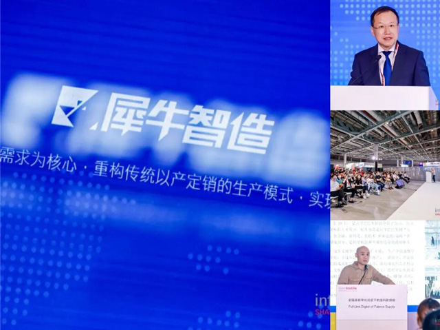 犀牛智造技術論壇首次亮相intertextile麵輔料展,以服裝智能製造為出發點,從麵料供應鏈側,講述基於平台的消費數據挖掘及企劃,並對未來數字化智能製造的的發展提出規劃和思路。