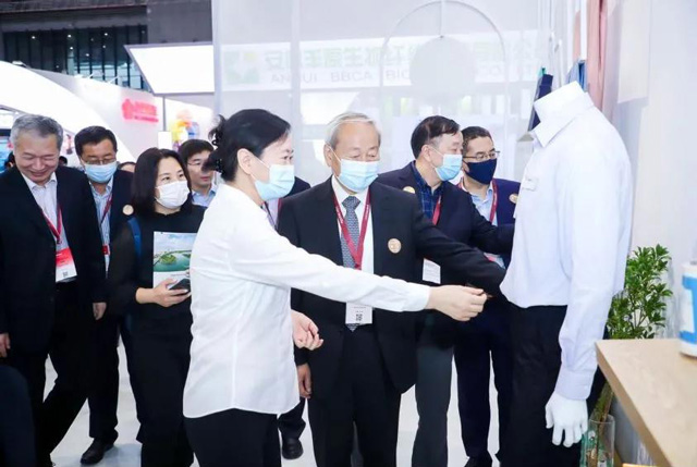 上午,中國紡織工業聯合會原會長杜鈺洲、中國紡織工業聯合會黨委副書記陳偉康、中國紡織工業聯合會副會長李陵申、端小平等領導一行人參觀了展會現場。