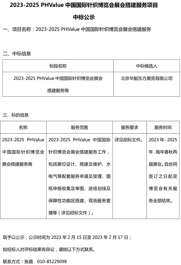 您現在的位置是:首頁 > 最新公告 2023-2025 PHValue中國國際針織博覽會展會搭建服務項目中標公示 來源:紡織貿促會 發布日期:2023-02-15 字體: 【小】 【中】 【大】 分享: 熱門文章: 2025intertextile春夏 | “友禮”同享齊觀展... [2025-02-19] 2024年我國紡織行業經濟運行總體平穩 [2025-02-17] 聚焦綠色智慧融合 展示產業用乐动买球平台 新趨勢 [2025-02-11] 響應政策 落實服務 | PH Value義烏展全力“備戰”中 [2025-02-11] 【亮星季】第一期正式開啟 | 商貿先行,品質好禮享不停 [2025-02-10] 展會直通車